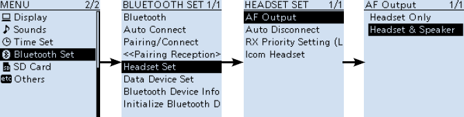 MENU/Bluletoothset/Data Device Set/SerialPort Function/CI-V(Echo Back OFF)