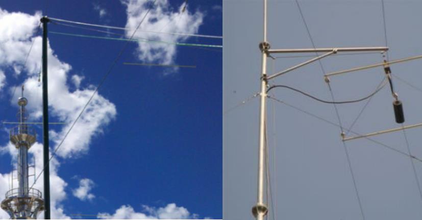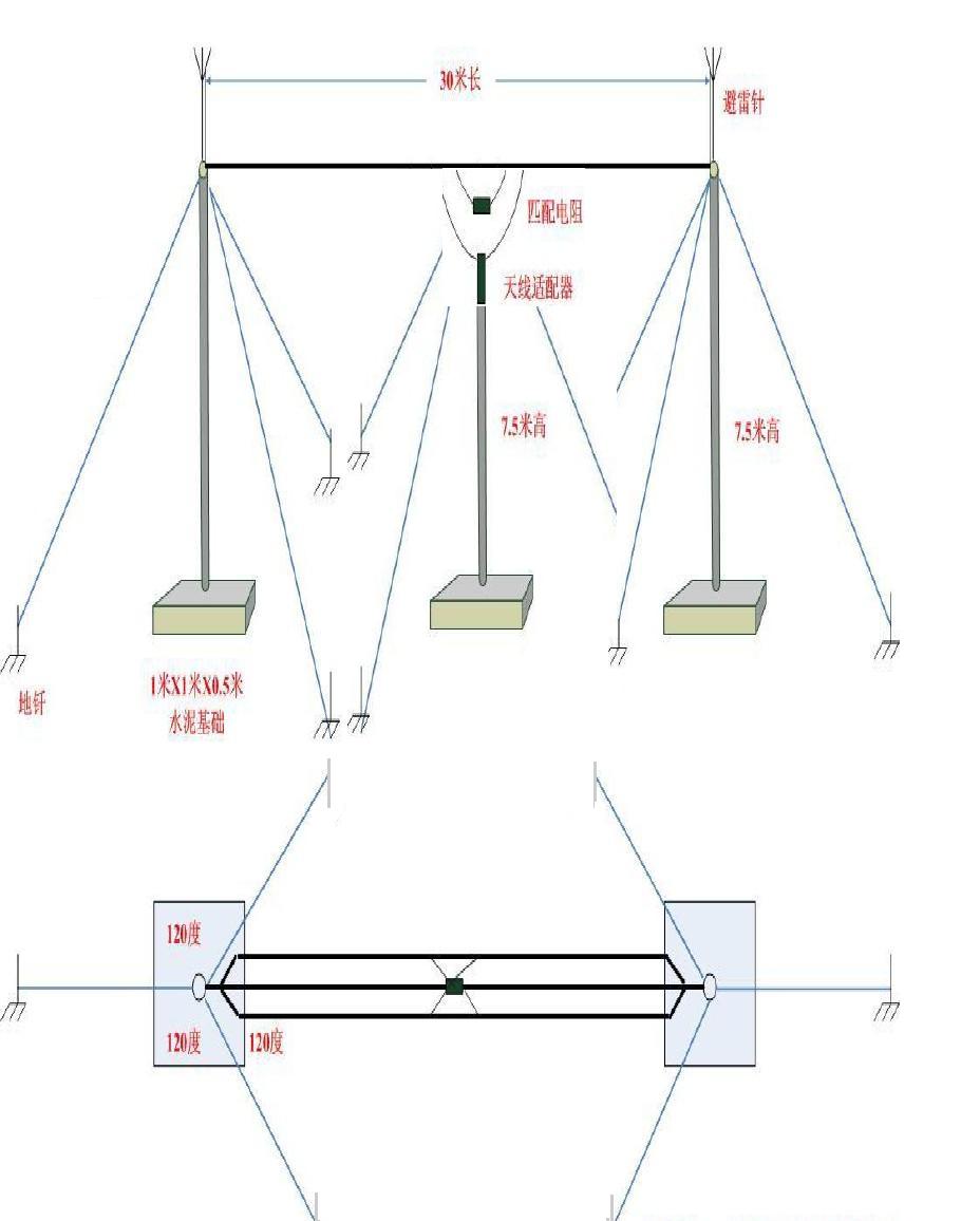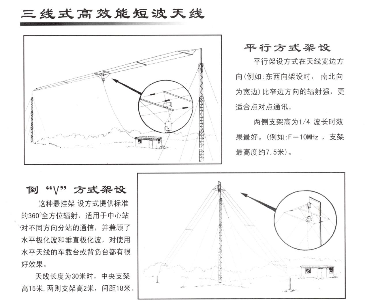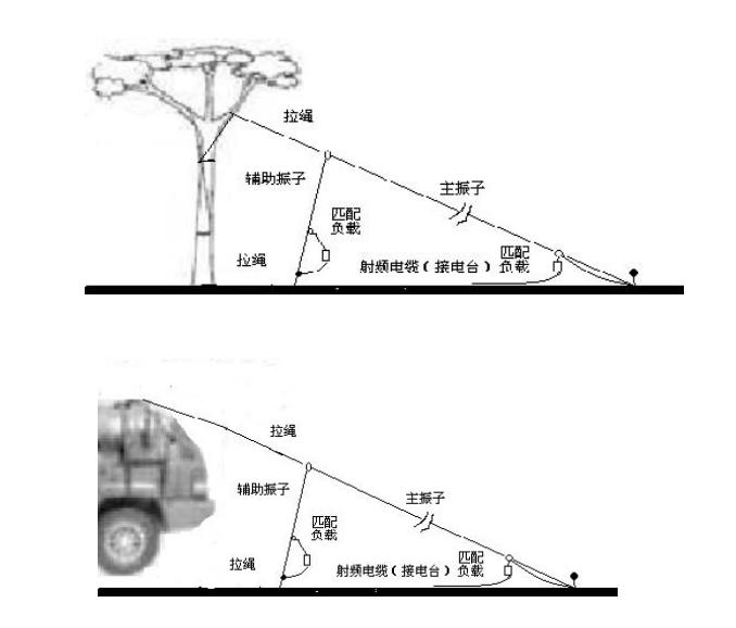 斜拉架設(shè)的方向圖接近全向全角,改善盲區(qū)通訊。架設(shè)時先釘好一只地釘,將振子底端在地釘上固定,然后將振子斜向拉直,栓在2-6米高的支撐物或者架桿上。后將輔助振子向下拉直固定在另一只地釘(釘入地面)上。架設(shè)方向沒有嚴格要求。