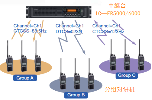 注意:在中繼臺(tái)(中轉(zhuǎn)臺(tái))應(yīng)用中對講機(jī)手臺(tái)需要重新編程和中繼臺(tái)(中轉(zhuǎn)臺(tái))頻率配套使用。