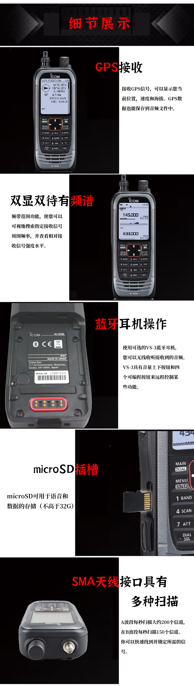 IC-R30雙顯雙待  雙重存儲  接收和解碼各種數(shù)字協(xié)議