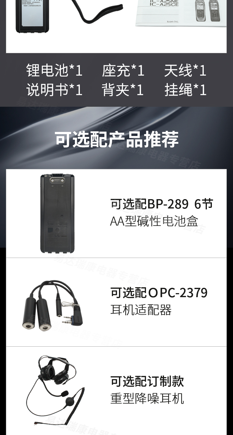 ICOM 艾可慕IC-A25航空對講機(jī)約2.3英寸大屏幕