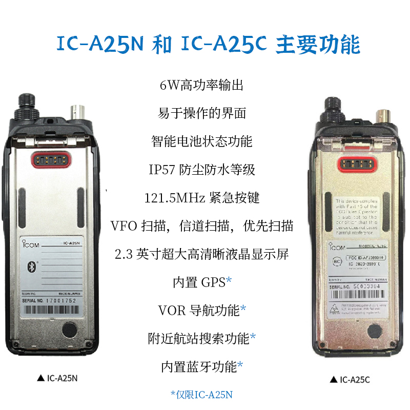 ICOM 艾可慕IC-A25航空對講機(jī)內(nèi)置GPS
