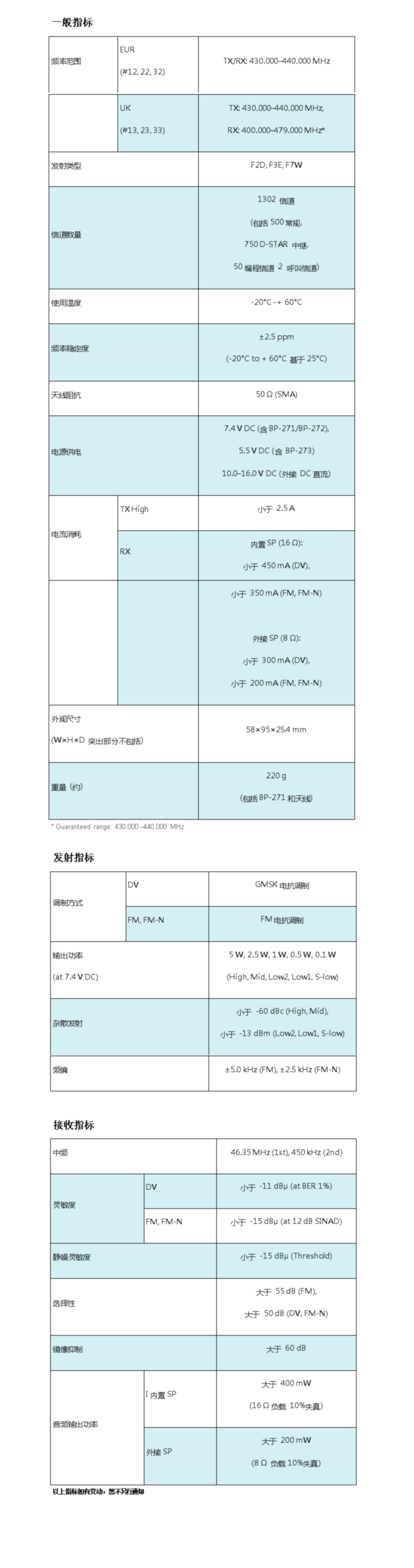 當(dāng)使用microSD卡時 (大 32GB),,包括語音記錄、GPS日志、記憶信道、D-STAR 中繼臺信息以及其他個人設(shè)置可存儲到microSD 卡中并可傳送到電腦。語音記錄功能錄制通話內(nèi)容并以“WAV”文件存儲,可以用電臺或電腦回放錄制內(nèi)容。