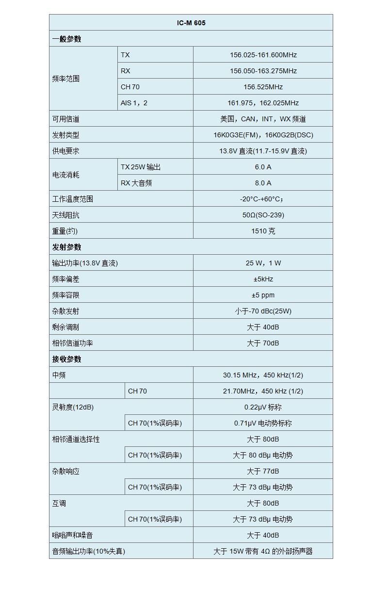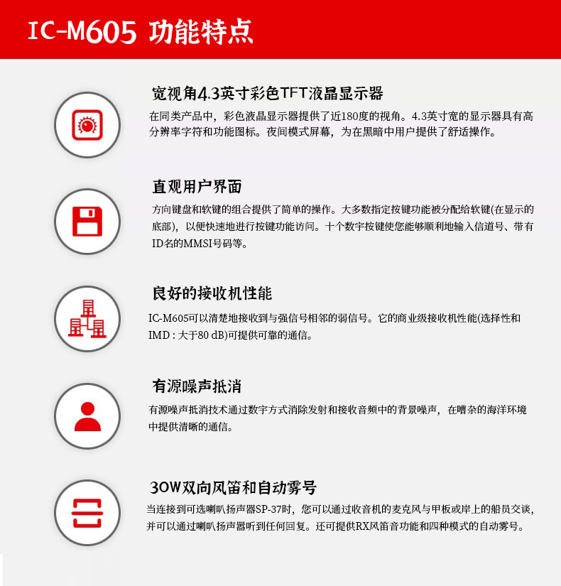 您當(dāng)前的位置: 首頁 > 產(chǎn)品中心 > icom艾可慕海事對講機(jī)IC-M605船用電臺