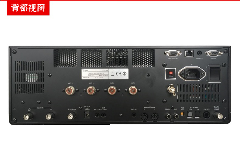 電臺有4個天線接口,針對不同頻率連接不同天線。 內置的dspC處理單元,提供高性能的頻譜顯示和信號處理。 散熱性能良好,保證200W大功率輸出。