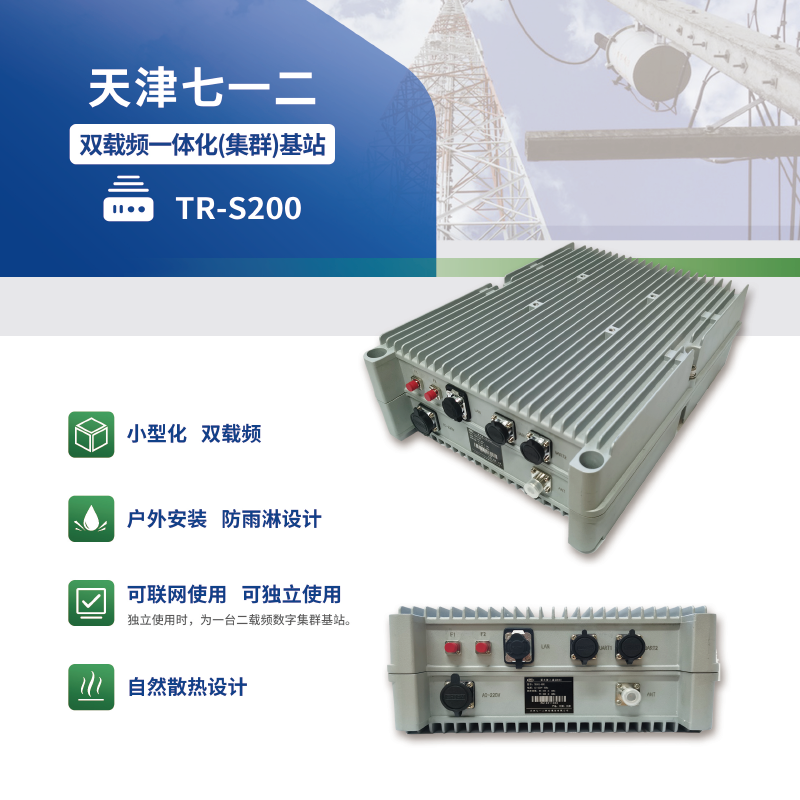 天津712雙載頻一體化(集群)基站TR-S200防雨設(shè)計聯(lián)網(wǎng)使用,固定使用