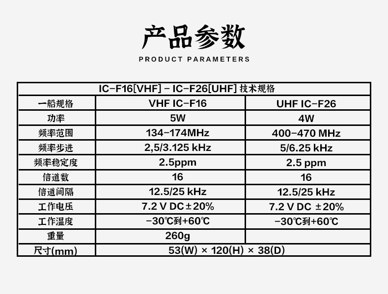 • 產(chǎn)品型號:IC-F16(VHF)/F26(UHF)