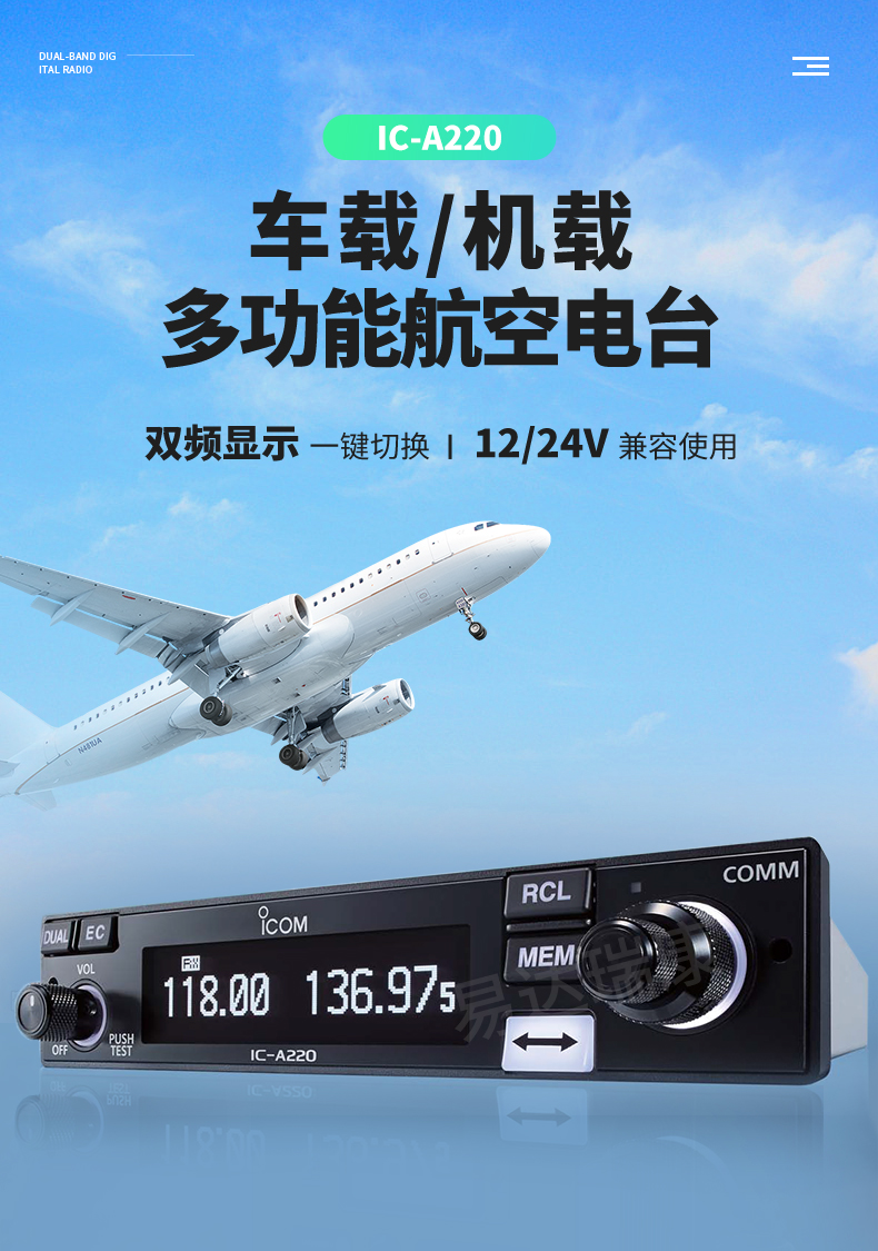 您當前的位置: 首頁 > 產(chǎn)品中心 > ICOM艾可慕IC-A220航空車載電臺