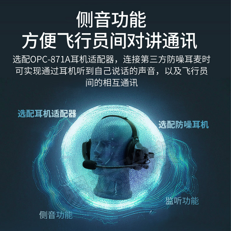 側(cè)音功能  當(dāng)使用選配件OPC-871A耳機(jī)適配器連接一個第三方的耳機(jī)時,側(cè)音功能就可以通過耳機(jī)聽到自己說話的聲音,即使在使用麥克風(fēng)時,自己的聲音也可以從耳機(jī)中監(jiān)聽到。