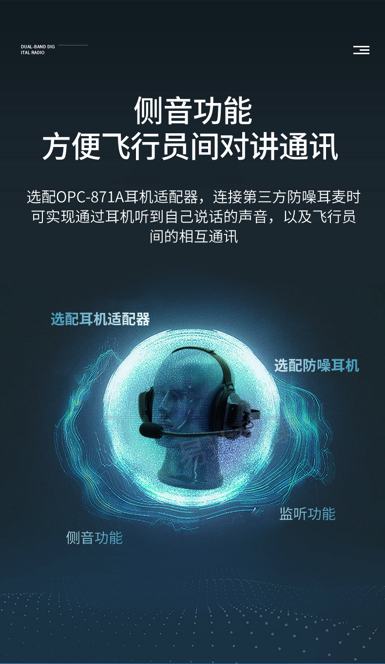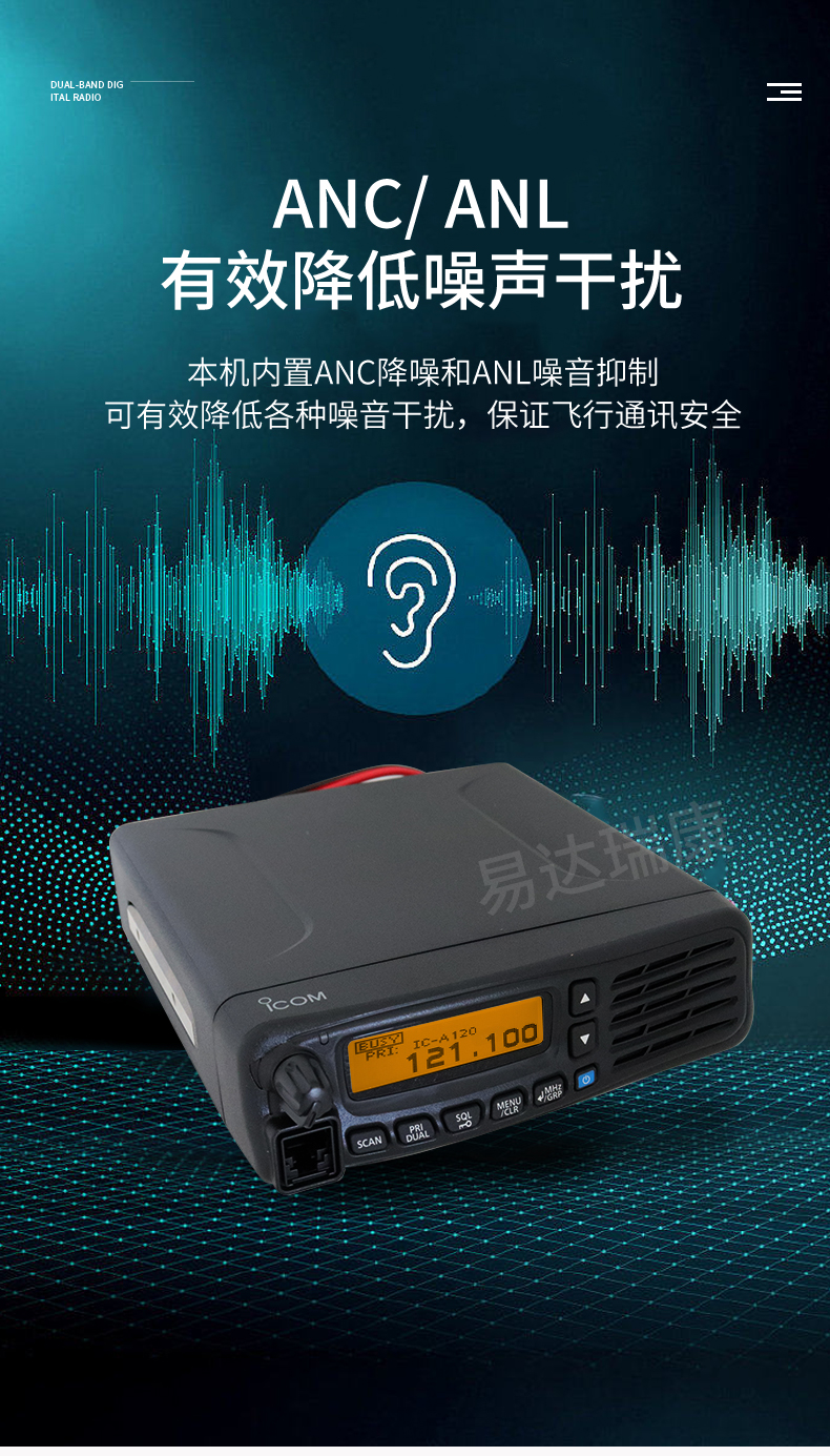 • ANC自動降噪,機(jī)場航空用車載臺,可選配藍(lán)牙耳機(jī)。