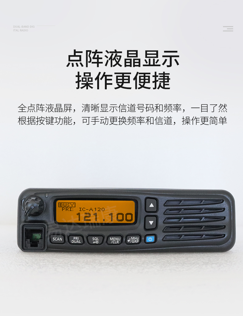 點陣式液晶屏,性能穩(wěn)定,可以顯示更多信息,可編程操作按鍵,輕松更換頻道和自由編輯頻率。操作簡單,使用容易