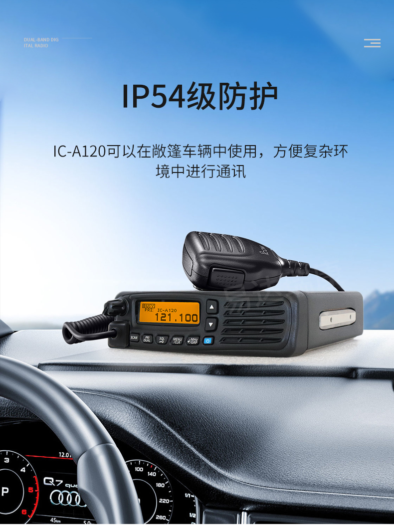 3  IP54  IC-A120此等級防護(hù)的航空電臺可以使用在敞篷車輛中。
