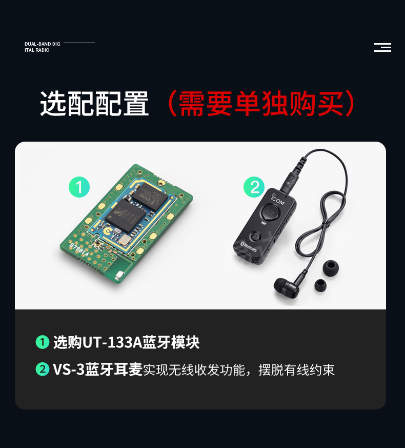 增加選配件,UT-133藍(lán)牙單元,可以連接第三方藍(lán)牙耳機(jī)使用,當(dāng)然也可以連接VS-3藍(lán)牙耳機(jī)使用,側(cè)音功能可以使用。