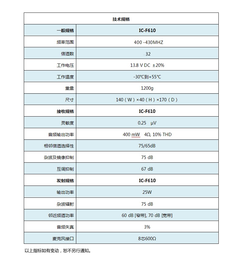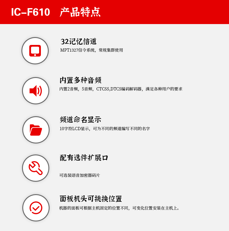 您當前的位置: 首頁 > 產(chǎn)品中心 > ICOM艾可慕IC-F610模擬車載電臺
